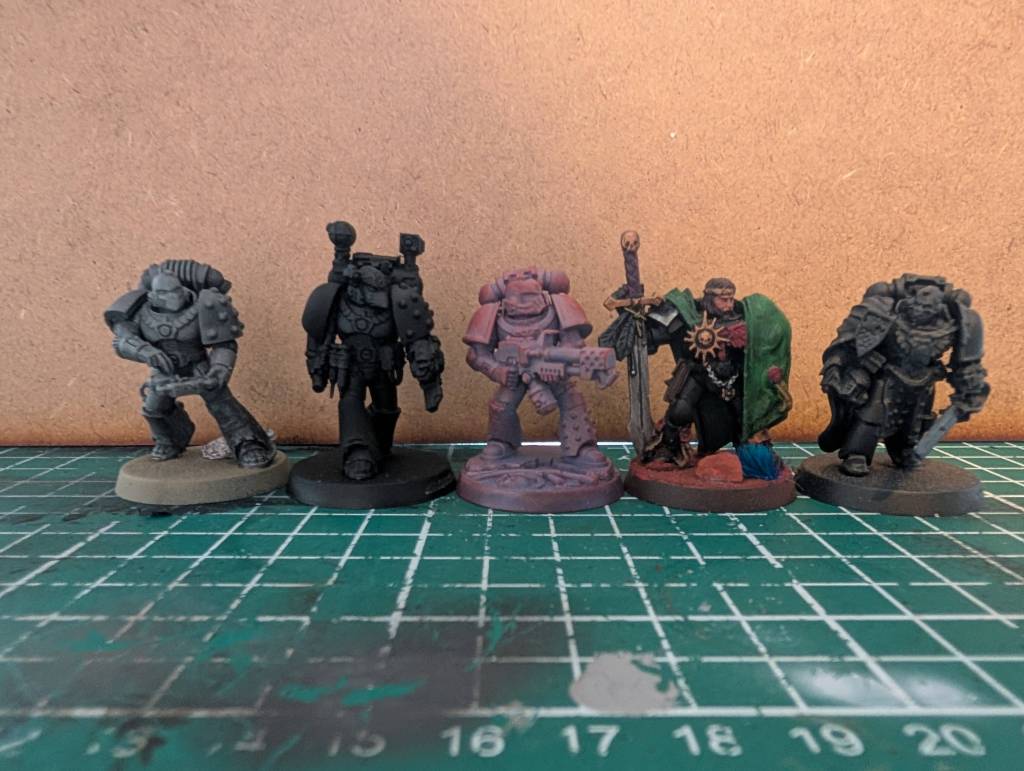 The kit is 4x times the above sprue along with a command squat, it’s quite barebones when it comes to options but is the sole source of chain bayonets currently. The marines have been upscaled slightly and are now a bit taller and posses slightly longer arms compared to older plastics. One thing to note is that their heads have been shrunk down a bit which can be noticeable of you mix older and newer heads in a unit.